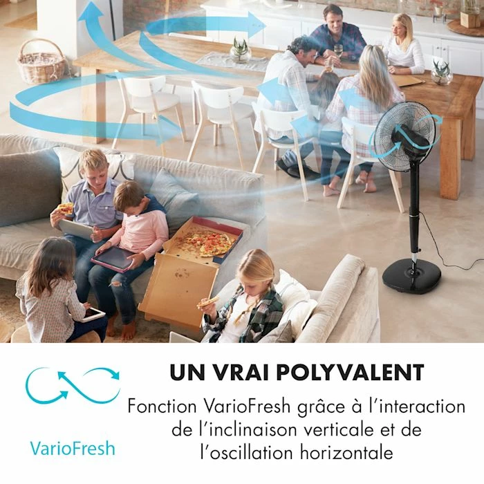 Le ventilateur sur pied Klarstein Infinity-Storm vous apporte au quotidien un air rafraîchissant lors des journées ensoleillées et peut garantir un débit d’air très naturel grâce à la Technologie VarioFresh.