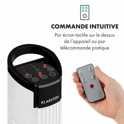 - Commande intuitive: grâce au panneau tactile sur la partie supérieure frontale de l’appareil ou grâce à la télécommande