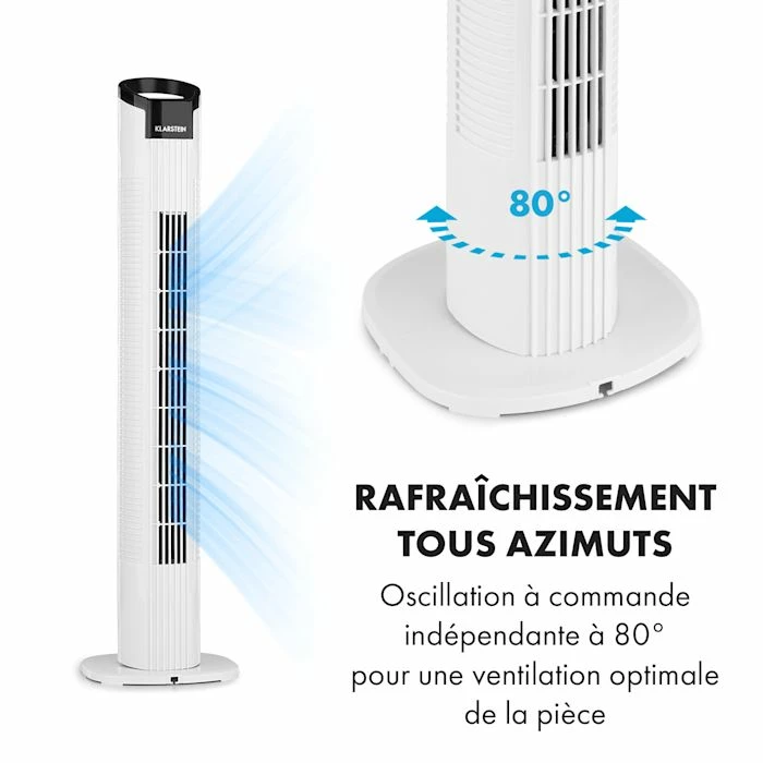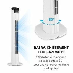 - Rafraîchit dans tous les coins: mouvement oscillatoire indépendant à 80° pour une ventilation optimale de la pièce
