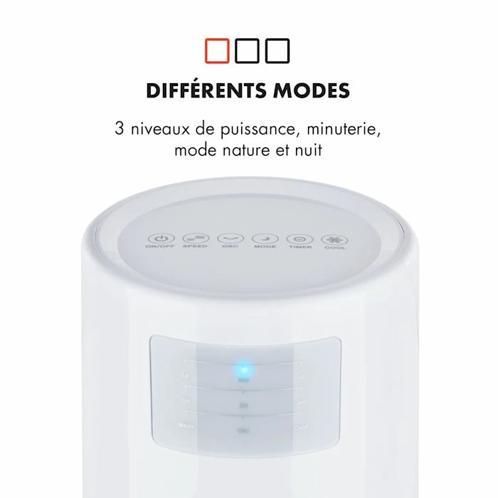 - Varié : 3 niveaux de puissance et 3 modes de ventilation