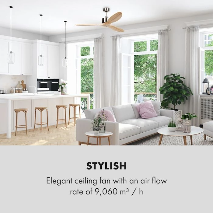 - Elégant : élégant ventilateur de plafond et plafonnier en un, avec débit d’air de 9060 m³/h