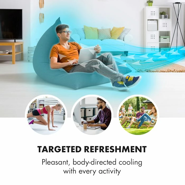 - Rafraîchissement ciblé : débit d’air rafraîchissant agréablement le corps lors de toute activité