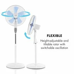 Pour un vent frais par temps chaud : ventilateur sur pied réglable en hauteur avec rotor à 5 pales et débit d’air max. de 4150 m³ / h.