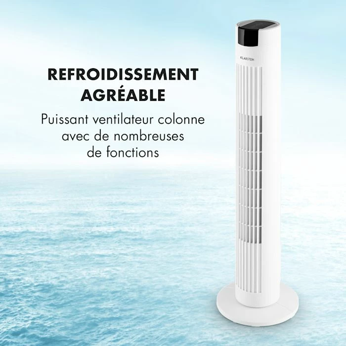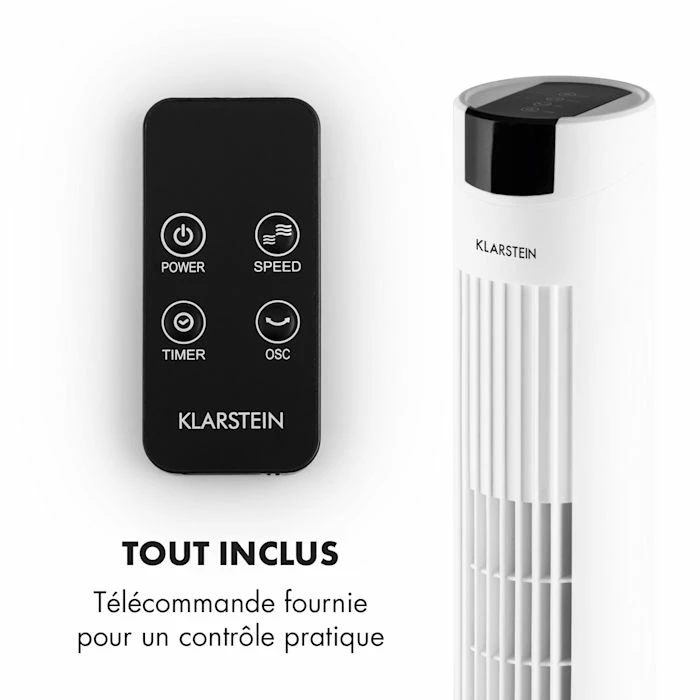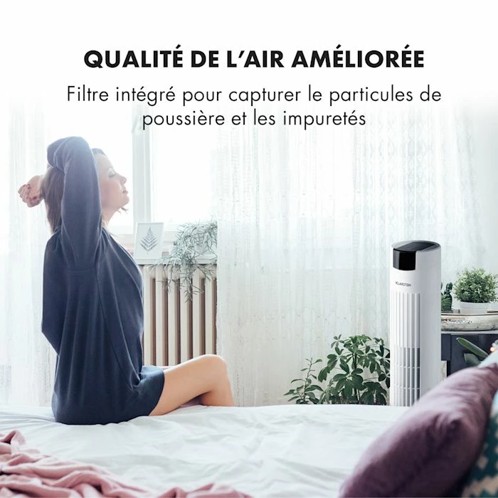 Le ventilateur tour Skyscraper 2G de Klarstein se distingue tant par son aspect que par ses performances et brasse l’air de tes pièces avec puissance. Le boîtier fin avec son look de gratte-ciel froid soutient déjà par sa seule forme le désir d’air frais et d’une douce brise. Le ventilateur à colonne ne mesure que 22,5 cm à son point le plus épais, ce qui lui permet de se faufiler dans les petits coins et recoins. Le ventilateur à colonne vous offre de l’air frais à trois vitesses (élevée, moyenne, lente) pour te rafraîchir. Une oscillation activable fait pivoter la partie colonne du Skyscraper de Klarstein de gauche à droite et inversement dans un angle de 60°, tandis qu’un parfum séduisant emplit la pièce grâce au diffuseur d’arômes.