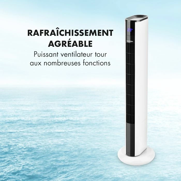 Le ventilateur tour Skyscraper 3G de Klarstein se distingue tant par son aspect que par ses performances et brasse l’air de tes pièces avec puissance. Le boîtier fin avec son look de gratte-ciel froid soutient déjà par sa seule forme le désir d’air frais et d’une douce brise. Le ventilateur à colonne ne mesure que 24 cm à son point le plus épais, ce qui lui permet de se faufiler dans les petits coins et recoins. Le ventilateur à colonne vous offre de l’air frais à trois vitesses (élevée, moyenne, lente) pour te rafraîchir. Une oscillation activable fait pivoter la partie colonne du Klarstein Skyscraper de gauche à droite et inversement dans un angle de 90°.