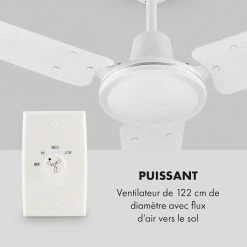 - Puissant : grand ventilateur de 48″ (122 cm) de diamètre