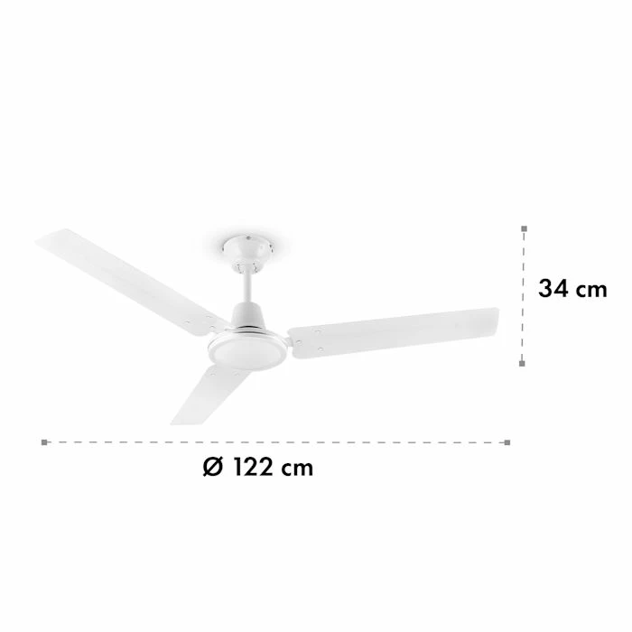 - Hauteur (du plafond au bas du ventilateur) : env. 34 cm