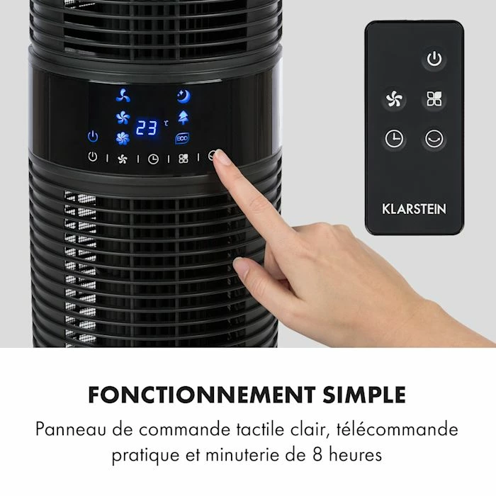 - Utilisation simple : panneau de commande tactile clair et télécommande pratique