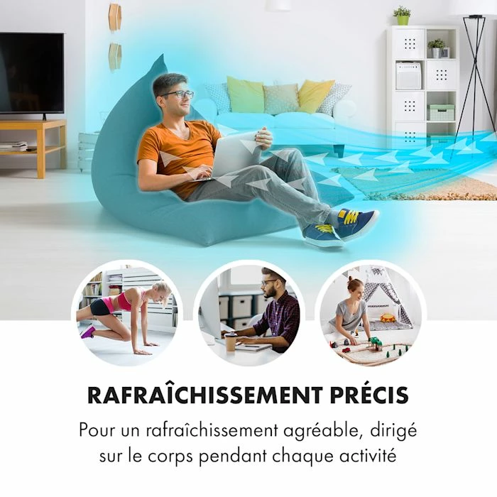 - Respirez dans le moindre recoin : oscillation automatique à 80 ° et manuelle à 360 ° pour une ventilation complète de la pièce