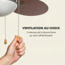 - Ventilation au choix : 3 vitesses allant de la brise douce au vent rafraîchissant