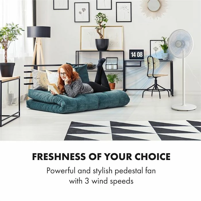 - De la fraîcheur sur demande : ventilateur sur pied puissant et élégant à 3 vitesses