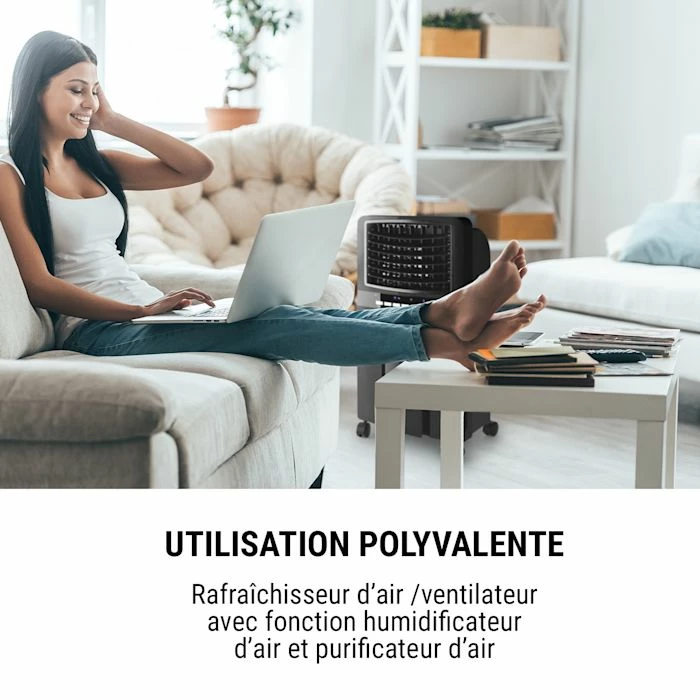 - Efficacité 3 en 1 : ventilateur, rafraîchisseur et humidificateur d’air en un seul appareil