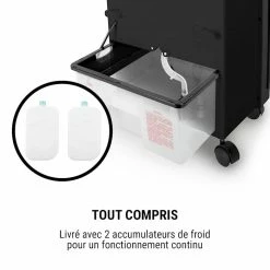 La fraîcheur de la mer Baltique. Le rafraîchisseur d’air oneConcept Baltic Black souffle une bouffée d’air frais chez vous, même lors des chaudes journées d’été. L’appareil intelligent 3 en 1 combine les fonctions de ventilateur, rafraîchisseur et humidificateur d’air.