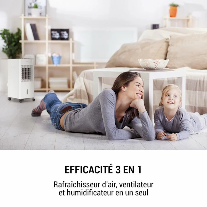 - Efficacité 3-en-1 : rafraîchisseur d’air, ventilateur et humidificateur d’air en un