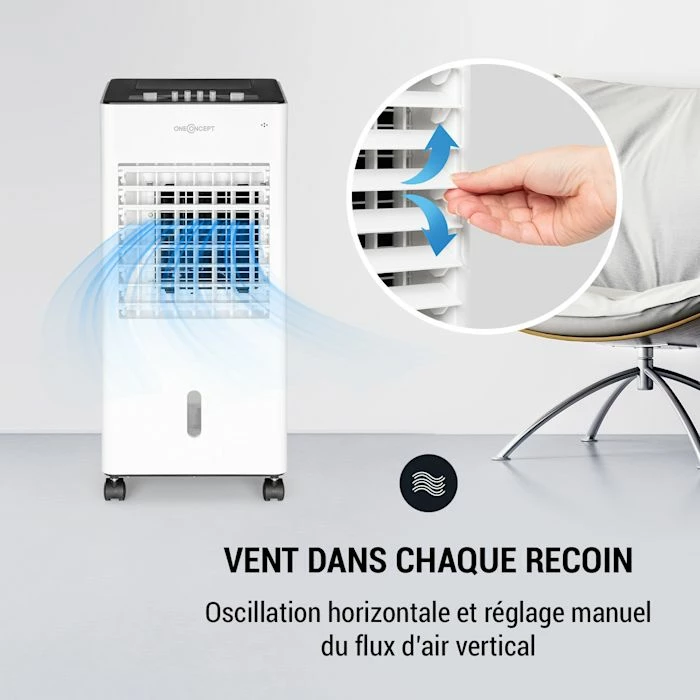 Triplement efficace : le rafraîchisseur d’air oneConcept Freshboxx offre à votre intérieur une efficacité 3 en 1 en tant que ventilateur, rafraîchisseur d’air et humidificateur en un seul appareil. Une fraîcheur agréable et appréciable pour l’été.