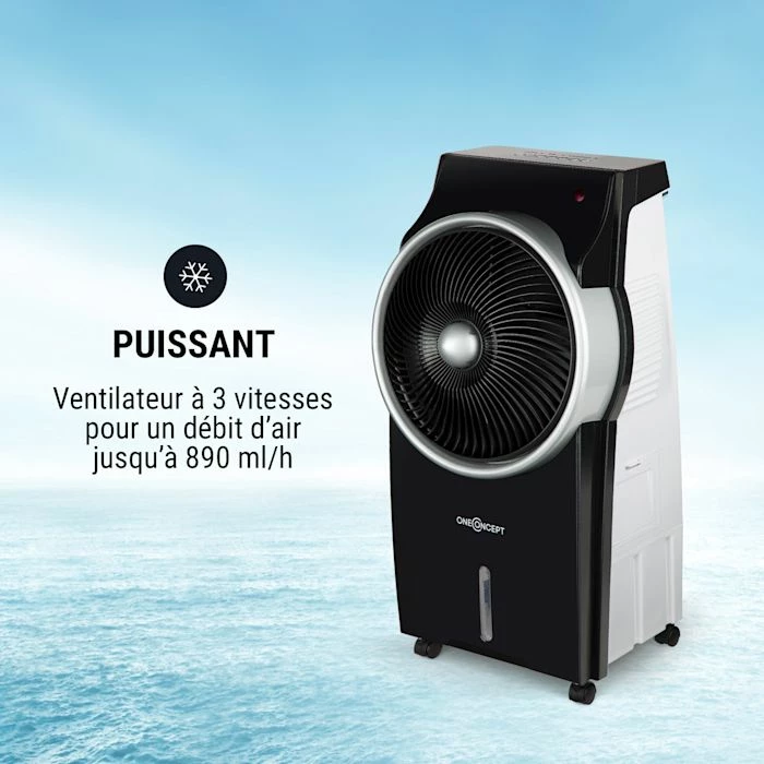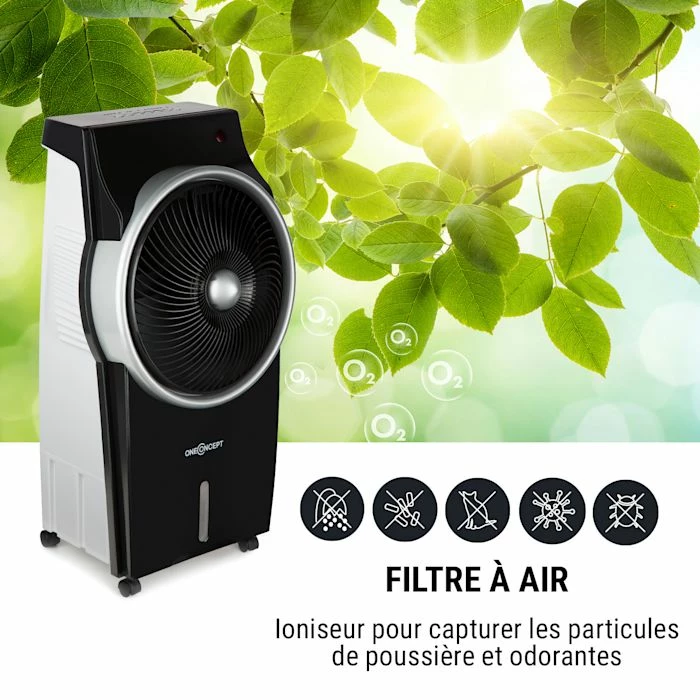 Un rafraîchissement royal pour les chaudes journées et nuits d’été : le rafraîchisseur d’air 4 en 1 oneConcept Kingcool assure non seulement un vent frais, mais le rafraîchit également et le libère de la poussière et des odeurs à la demande.