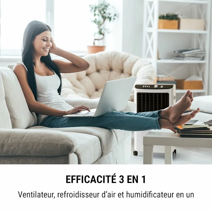 - Efficacité 3 en 1 : ventilateur, refroidisseur d’air et humidificateur en un