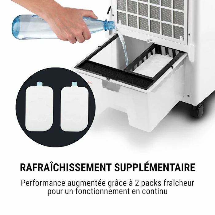 - Des heures de fraîcheur : deux blocs réfrigérants remplaçables et un réservoir d’eau de 7 litres