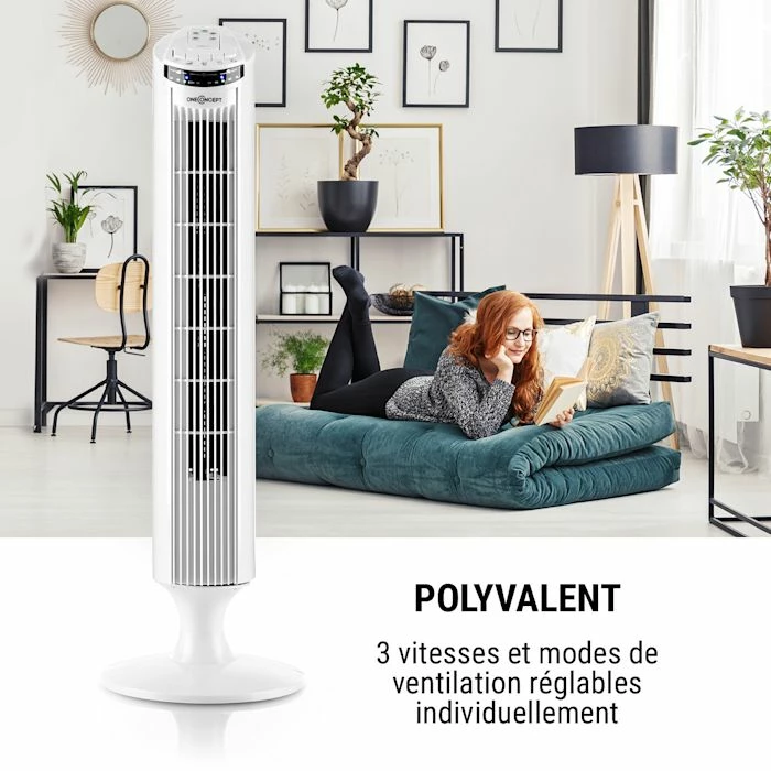 - Ventilateur colonne peu encombrant pour de l’air frais les jours de forte chaleur