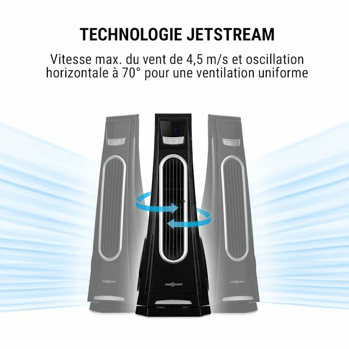 - Technoologie JetStream : vitesse max. de 4,5 m/s et oscillation horizontale à 70° pour une ventilation homogène de la pièce