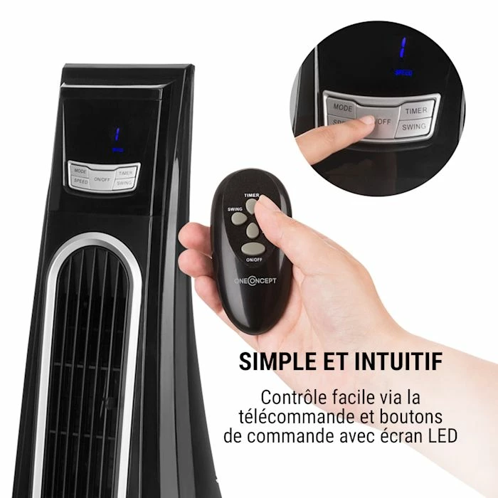 Une brise puissante pour garder l’esprit frais : Avec le ventilateur tour oneConcept Blown Away, profitez d’un niveau supérieur de rafraîchissement et d’un design élégant de gratte-ciel !