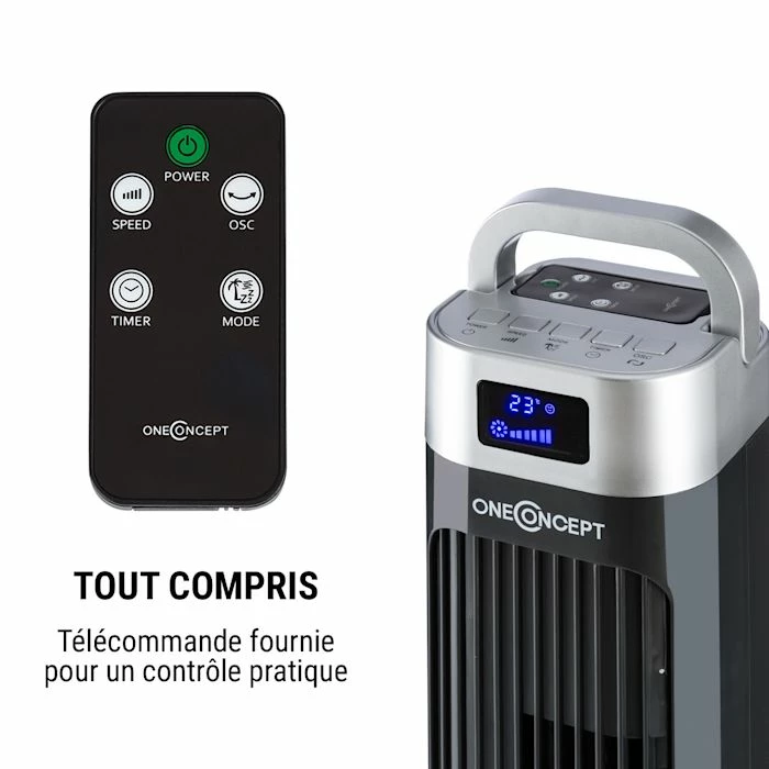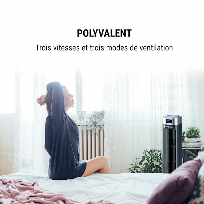 Un été chaud avec l’esprit frais : le ventilateur colonne oneConcept Hightower est votre solution fraîcheur puissante et peu encombrante.